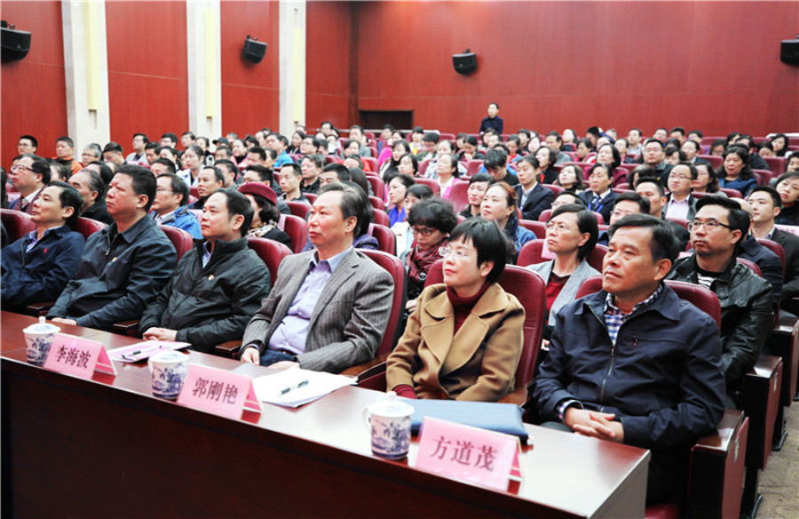 在收看中共十九大直播盛況后,中共市委統(tǒng)戰(zhàn)部召開了市各民主黨派學(xué)習(xí)中共十九大精神座談會。郭剛艷受社市委主委梁鳴的委托,代表社市委在會上發(fā)言,暢談學(xué)習(xí)感受和體會。她認(rèn)為,中國共產(chǎn)黨第十九次全國代表大會是在全面建成小康社會決勝階段、中國特色社會主義進(jìn)入新時代的關(guān)鍵時期召開的一次十分重要的大會。習(xí)近平總書記所作的報告站在歷史和時代的高度,深刻闡述了新的歷史條件下堅持和發(fā)展中國特色社會主義的一系列重大理論和實踐問題,提出了一系列重要思想、重要觀點、重大判斷和重大舉措。她表示,要把學(xué)習(xí)中共十九大精神作為全社當(dāng)前和今后一個時期的重要政治任務(wù),將思想和行動統(tǒng)一到十九大精神上來,傳承愛國、民主、科學(xué)的優(yōu)良傳統(tǒng),圍繞中心,服務(wù)大局,切實履行參政黨職能,發(fā)揮科技、城建等領(lǐng)域的優(yōu)勢,圍繞武漢市經(jīng)濟(jì)社會健康發(fā)展匯智聚力,為武漢長江新城、長江主軸和東湖綠心建設(shè)出謀劃策,主動作為,再立新功,為建設(shè)現(xiàn)代化、國際化、生態(tài)化大武漢作出新的更大貢獻(xiàn)。