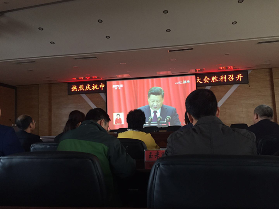 9時整,中國共產(chǎn)黨第十九次全國代表大會在北京人民大會堂隆重開幕。伴隨著會議主持人李克強宣布“請習(xí)近平總書記代表十八屆中央委員會向大會作報告”的話音剛落,大家熱切期待和盼望的時刻終于到來。會場里的人平心靜氣,大家的眼睛都緊盯著大屏幕上的畫面,認(rèn)真聆聽著習(xí)近平總書記鏗鏘有力的報告。在聽到習(xí)近平總書記說,“中國共產(chǎn)黨第十九次全國代表大會,是在全面建成小康社會決勝階段、中國特色社會主義進入新時代的關(guān)鍵時期召開的一次十分重要的大會。”“大會的主題是:不忘初心,牢記使命,高舉中國特色社會主義偉大旗幟,決勝全面建成小康社會,奪取新時代中國特色社會主義偉大勝利,為實現(xiàn)中華民族偉大復(fù)興的中國夢不懈奮斗”時,機關(guān)干部們倍感振奮,深受鼓舞。