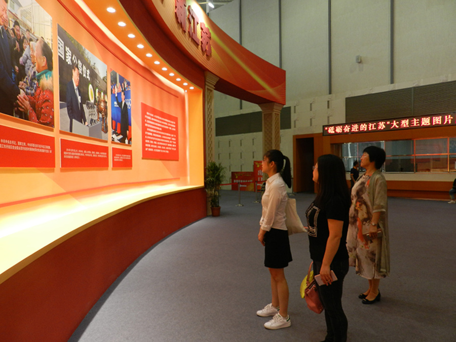 展覽由中共江蘇省委宣傳部、省發(fā)改委主辦,以“開(kāi)啟‘兩聚一高’新征程 建設(shè)‘強(qiáng)富美高’新江蘇”為主題,分序篇、改革篇、創(chuàng)新篇、富民篇、生態(tài)篇、法治篇、文化篇、黨建篇和結(jié)語(yǔ) 9 個(gè)部分,另設(shè)VR全景圖片和視頻體驗(yàn)區(qū),全面展示5年來(lái)江蘇省委、省政府團(tuán)結(jié)帶領(lǐng)全省人民開(kāi)拓創(chuàng)新、砥礪奮進(jìn)取得的巨大成就。