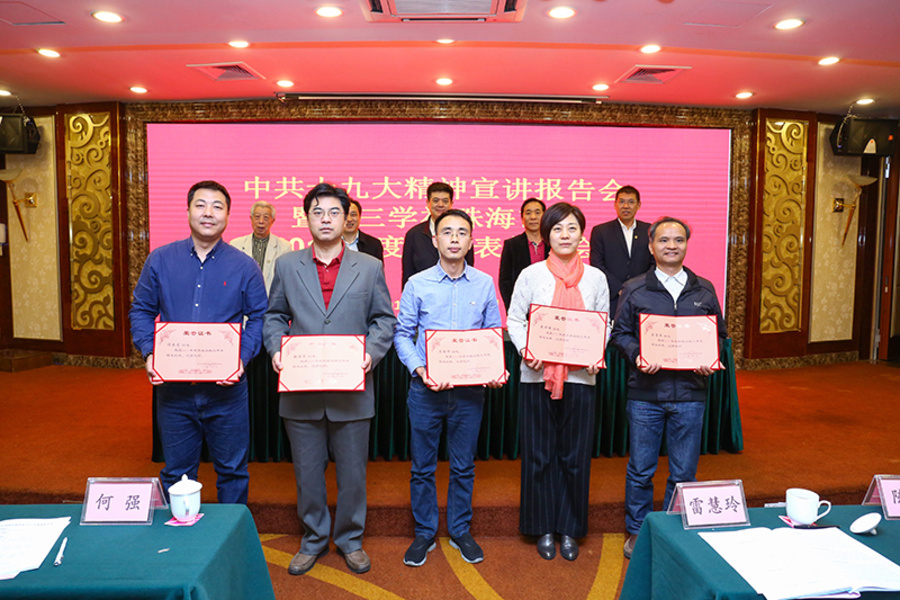 今年,九三學(xué)社珠海市委被九三學(xué)社中央評為“2013--2017年度參政議政工作先進(jìn)集體”,賀軍被評為“2013--2017年度參政議政工作先進(jìn)個人”。黃驚雷為社市委和賀軍頒發(fā)了獎牌、獎狀。