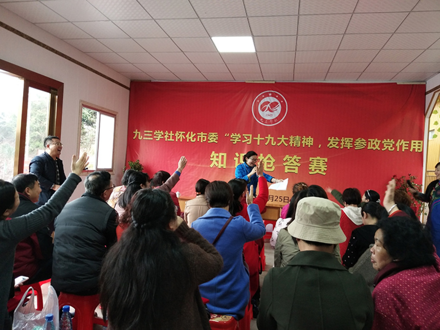 為深入學(xué)習(xí)貫徹中共十九大精神,引導(dǎo)全體社員進(jìn)一步把十九大精神學(xué)深悟透,3月25日下午,九三學(xué)社懷化市委舉行“學(xué)習(xí)十九大精神、發(fā)揮參政黨作用”知識搶答賽活動。