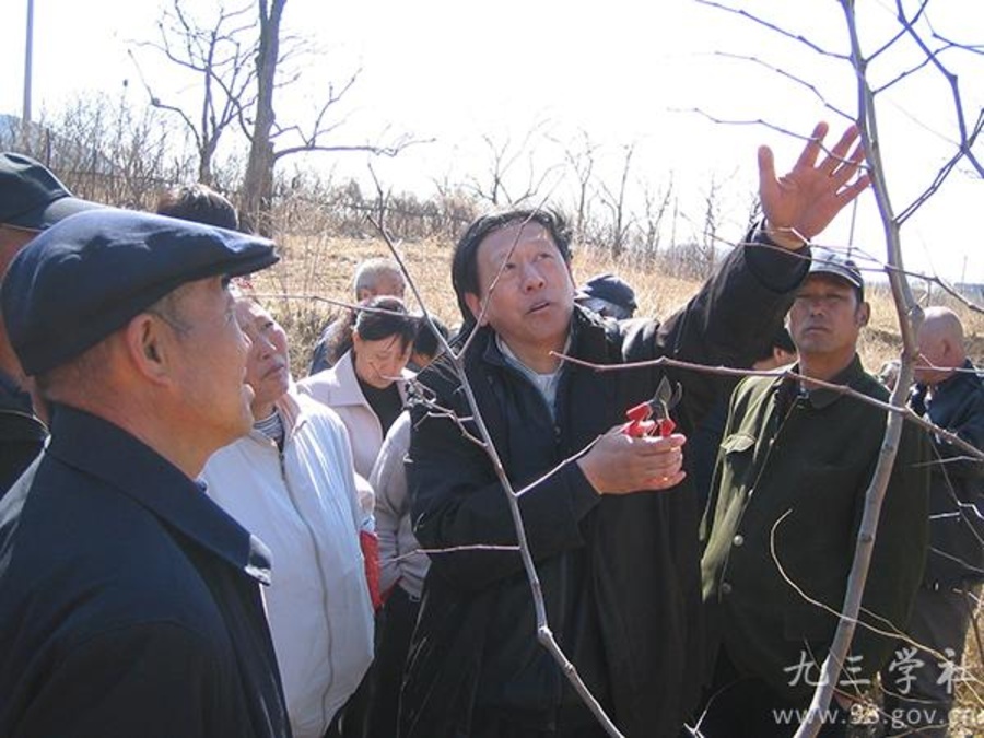 甄燕昌向果農(nóng)們傳授果樹剪枝技術(shù)