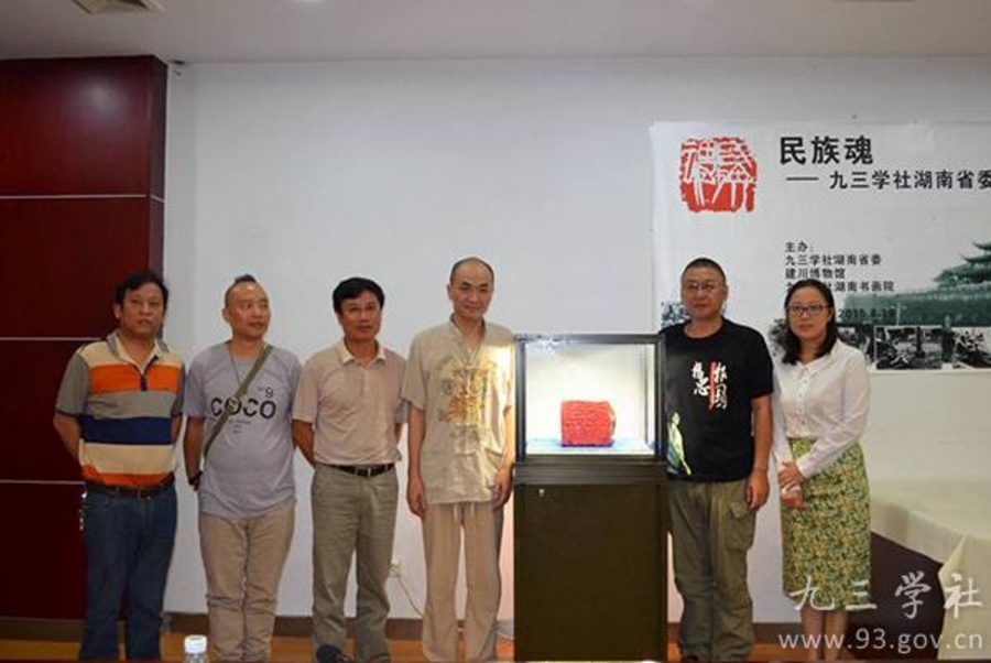 王仁祥表示,九三學(xué)社就是為紀(jì)念1945年9月3日抗戰(zhàn)勝利而改名成立的參政黨。在9月3日“中國人民抗日戰(zhàn)爭勝利紀(jì)念日”之前舉辦這個活動很有意義。他說,湖南曾是抗戰(zhàn)的前哨陣地,是戰(zhàn)斗最多、最慘烈的主戰(zhàn)場之一。在湖湘大地,來自四川、浙江等地的熱血男兒,他們以中國軍人的身份在湖湘大地筑起保家衛(wèi)國的堡壘。巨型篆刻作品《民族魂》銘刻的是那段難以磨滅的長沙抗戰(zhàn)史,飽含著沉甸甸的書生報國情懷。九三學(xué)社湖南省委與四川的結(jié)緣早在2008年汶川地震就開始了,那時九三學(xué)社湖南省委曾組織書畫義賣,所得140多萬全部捐獻(xiàn)給地震災(zāi)區(qū),九三學(xué)社湖南省委還發(fā)動全省社員募集20萬社費(fèi)捐助理縣援建文體設(shè)施。所有這些因緣,這些往來,都值得紀(jì)念。我堅信,這份濃濃的川湘兩地情懷將我們永遠(yuǎn)串連在一起!