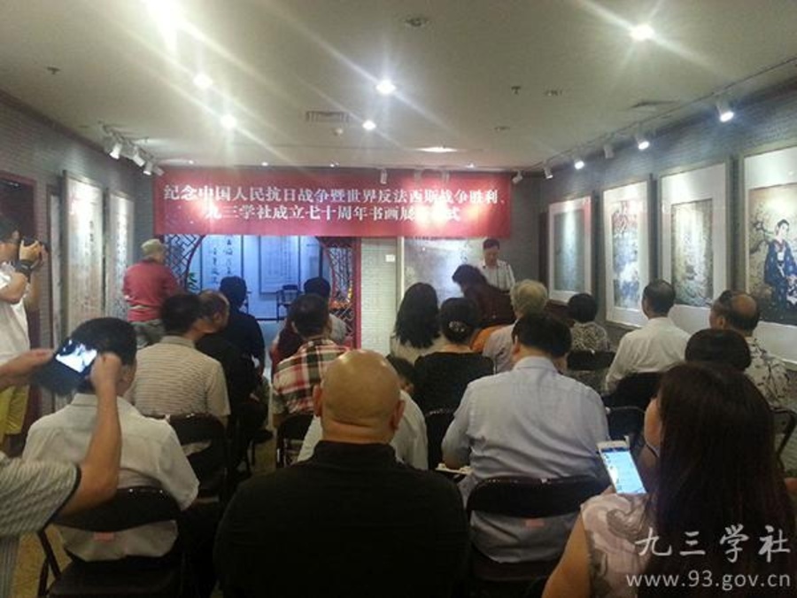 由九三學社江蘇省委、九三學社江蘇畫院主辦,江蘇知何堂藝術品投資有限公司承辦的《紀念中國人民抗日戰(zhàn)爭暨世界反法西斯戰(zhàn)爭勝利70周年、紀念九三學社成立70周年書畫展》于2015年8月21日在南京市河西萬達廣場C座12層九三學社江蘇畫院展廳隆重開幕。