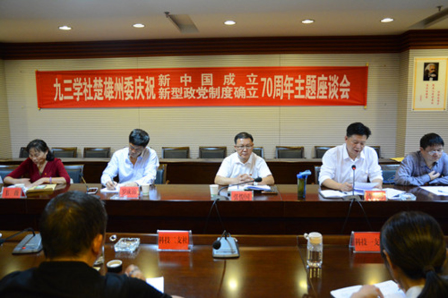 9月20日,九三學(xué)社楚雄州委在楚雄州社會(huì)主義學(xué)院召開慶祝新中國成立、新型政黨制度確立70周年主題座談會(huì)。會(huì)議由九三學(xué)社楚雄州委李輝秘書長主持,他指出,這個(gè)座談會(huì)對于持續(xù)深入學(xué)習(xí)貫徹習(xí)近平新時(shí)代中國特色社會(huì)主義思想和中共十九大精神,堅(jiān)持好、發(fā)展好、完善好我國新型政黨制度,不斷加強(qiáng)新時(shí)代中國特色社會(huì)主義參政黨自身建設(shè),堅(jiān)守不忘合作初心、繼續(xù)攜手前進(jìn)具有重要意義。