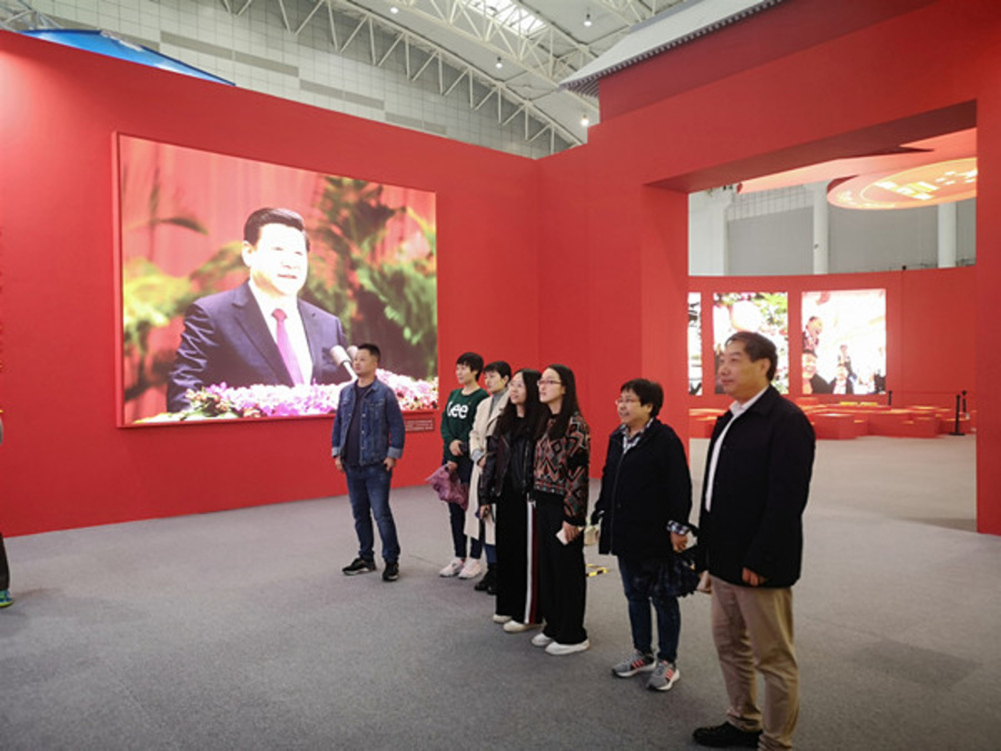本次展覽分為“家國情懷”“追趕超越”“不忘初心”三個內(nèi)容板塊,選擇不同歷史時期的珍貴圖片近千幅、實物展品近400件,充分運(yùn)用聲光電等多媒體科技展示手段,全方位立體化呈現(xiàn)新中國成立70年來特別是黨的十八大以來,全省經(jīng)濟(jì)、政治、文化、社會、生態(tài)文明和黨的建設(shè)領(lǐng)域取得的顯著成就,以及三秦百姓生活發(fā)生的巨大變化,多媒體科技的展示手段吸引了全體同仁的目光,大家紛紛駐足仔細(xì)觀看。