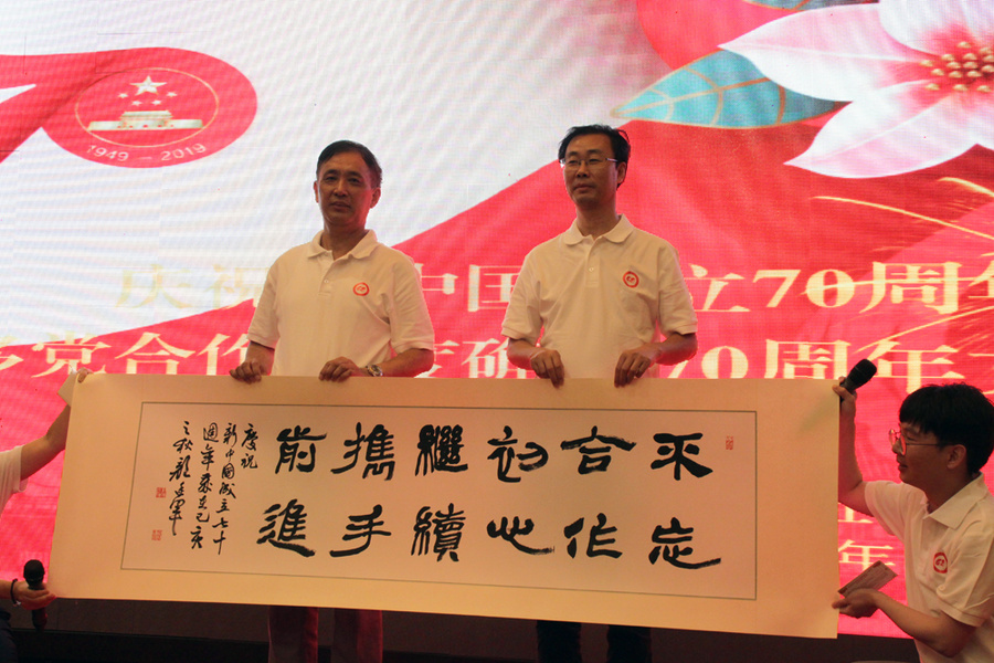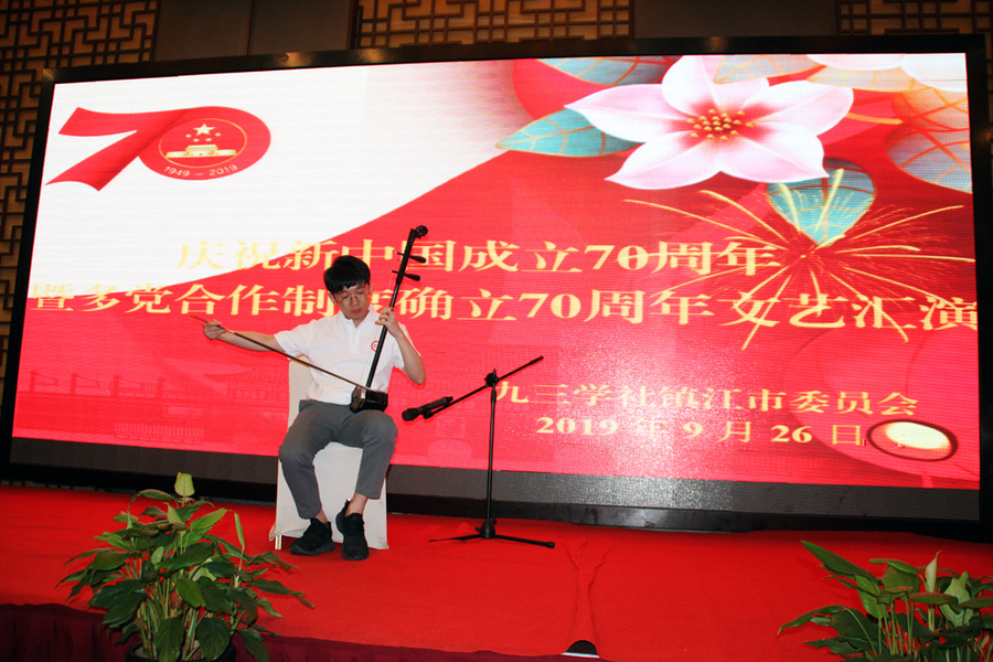 9月26日下午,在位于鎮(zhèn)江市國際飯店的九三學(xué)社鎮(zhèn)江市委慶祝新中國成立70周年文藝匯演現(xiàn)場,唱歌聲、朗誦聲不絕于耳,歡笑聲、鼓掌聲此起彼伏。