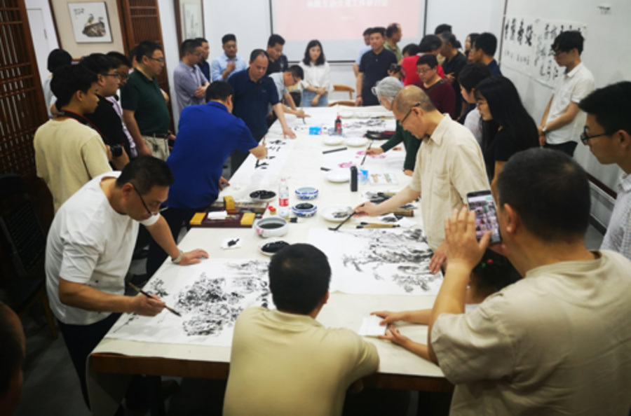 根據(jù)社中央2019年工作要點的相關要求,結合社湖北省委“不忘初心 牢記使命”和社北京市委“不忘合作初心 繼續(xù)攜手前進”主題教育活動,2019年京鄂書畫院在社中央書畫院指導、支持下,共同舉行以“慶祝新中國成立70周年---2019年京鄂書畫院互訪交流工作研討會暨張大風作品展”為主題的省級組織書畫院工作研討、“九三學社全國傳統(tǒng)教育基地”學習考察、書畫筆會、工作交流等系列活動。以樹立“四個意識”,堅定“四個自信”,做到“兩個維護”為目的,以書畫為媒,抒發(fā)對蒸蒸日上、繼往開來、不斷進取的偉大祖國的無限熱愛,歌頌中國共產(chǎn)黨領導的多黨合作事業(yè)進步與發(fā)展,表達民主黨派成員,不忘合作初心,繼續(xù)攜手邁進新時代,期盼中國夢早日實現(xiàn)的決心和信心。