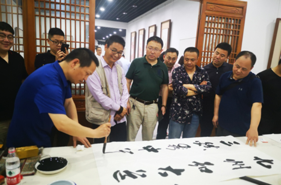 社湖北省委副主委梁鳴、秘書長蔡國斌,社湖北省委組織部部長陳建虹,社湖北書畫院書法家和企業(yè)代表等參加相關活動。(劉金緩)