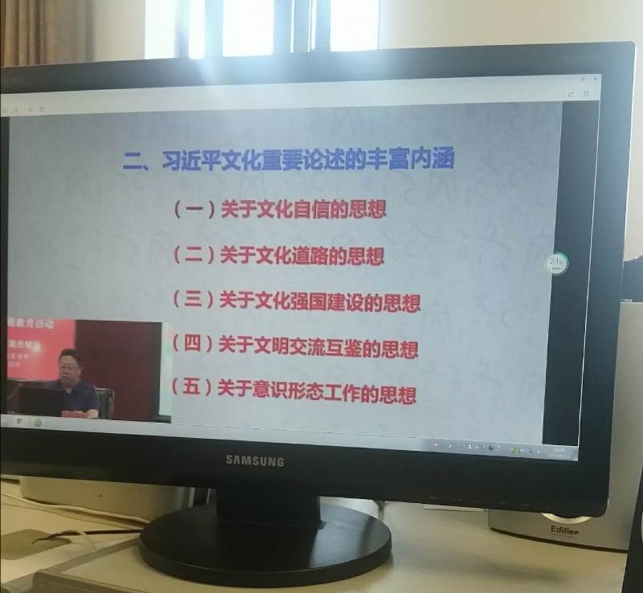 此次學(xué)習(xí)邀請(qǐng)到中央黨校文史部教授、博導(dǎo),中央黨校創(chuàng)新工程首席專家、國(guó)家社科基金重大項(xiàng)目首席專家范玉剛博士,圍繞《習(xí)近平新時(shí)代中國(guó)特色社會(huì)主義思想的文化解讀》進(jìn)行授課。課堂上,范玉剛博士通過“習(xí)近平文化重要論述的語(yǔ)境與問題意識(shí)”和“習(xí)近平文化重要論述的豐富內(nèi)涵”兩大部分九條要點(diǎn),結(jié)合近期習(xí)近平總書記考察甘肅時(shí)有關(guān)文化的重要講話以及古今中外文化理論思想,尤其是當(dāng)前所處的社會(huì)環(huán)境、意識(shí)形態(tài),進(jìn)一步闡述習(xí)近平總書記對(duì)文化建設(shè)的重要指導(dǎo)意見。