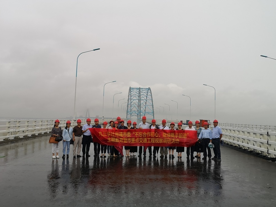 在九三學(xué)社創(chuàng)建七十四周年紀(jì)念日到來之際,9月2日下午,九三學(xué)社南通市委員會(huì)組織開展“不忘合作初心、繼續(xù)攜手前進(jìn)”主題教育暨南通市政協(xié)九三學(xué)社界別活動(dòng),社內(nèi)市政協(xié)委員及市人大代表和基層組織負(fù)責(zé)人參加活動(dòng),對(duì)南通市重大交通建設(shè)工程進(jìn)行考察調(diào)研。南通市政協(xié)副主席、九三學(xué)社南通市委主委尹建爐,副主委陳伯森、季平、王進(jìn),秘書長張愛娟參加活動(dòng)。南通市政協(xié)環(huán)境資源和城鄉(xiāng)建設(shè)委員會(huì)秘書處副處長劉冬梅應(yīng)邀參加活動(dòng)。