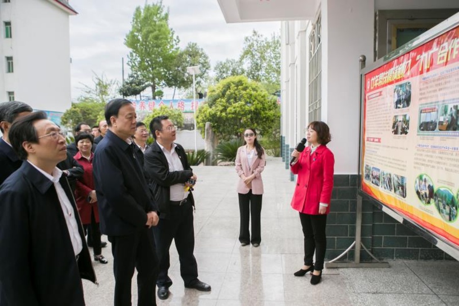 在九三學(xué)社中央定點(diǎn)扶貧的廣元市旺蒼縣,武維華一行深入尚武鎮(zhèn)寨梁村,察看種植產(chǎn)業(yè)、電商銷售等取得的進(jìn)展,了解村集體經(jīng)濟(jì)助農(nóng)增收情況;走進(jìn)旺蒼縣中醫(yī)院、旺蒼中學(xué)、劉瑞龍紅軍小學(xué)等幫扶項(xiàng)目點(diǎn),深入東河鎮(zhèn)現(xiàn)代農(nóng)業(yè)園,實(shí)地了解健康、教育、產(chǎn)業(yè)扶貧情況;走訪慰問(wèn)易地搬遷的貧困戶,察看精準(zhǔn)脫貧實(shí)際成效。