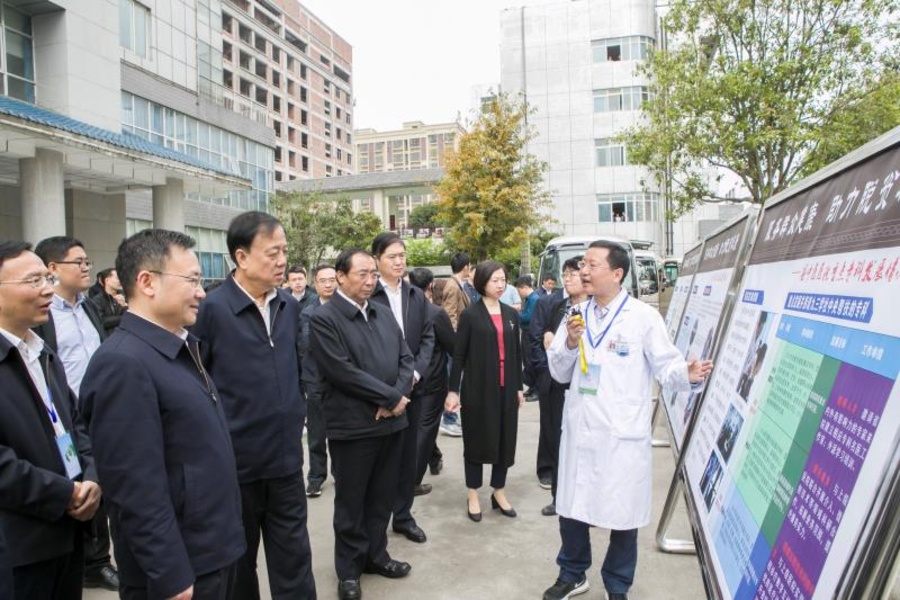 調(diào)研組在旺蒼縣中醫(yī)院考察健康扶貧工作。