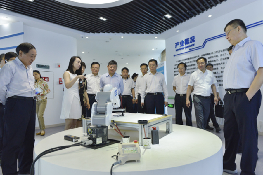 調(diào)研組一行在高新區(qū)展覽館參觀機器人寫字