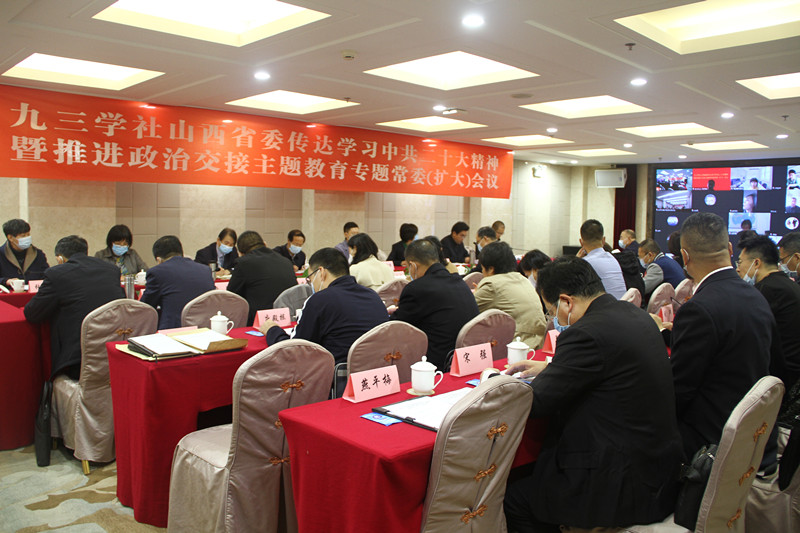 10月29日上午,九三學(xué)社山西省委通過現(xiàn)場和視頻相結(jié)合的方式召開傳達(dá)學(xué)習(xí)中共二十大精神暨推進(jìn)政治交接主題教育專題常委(擴(kuò)大)會(huì)議。山西省政協(xié)副主席、九三學(xué)社山西省委主委李青山出席會(huì)議并講話,就全省社組織學(xué)習(xí)宣傳貫徹中共二十大會(huì)議精神作出安排部署。