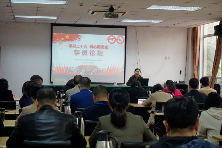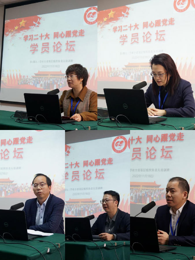 為推動(dòng)黨的二十大精神“三進(jìn)”,持續(xù)掀起學(xué)習(xí)宣傳貫徹二十大精神的熱潮,11月16日,九三學(xué)社江西省第1期基層組織負(fù)責(zé)人培訓(xùn)班舉辦了“學(xué)習(xí)二十大,同心跟黨走”學(xué)員論壇。4名學(xué)員從不同角度、不同領(lǐng)域、不同專業(yè)圍繞學(xué)習(xí)中共二十大精神這一主題做了主旨發(fā)言。5位學(xué)員結(jié)合實(shí)際工作就如何落實(shí)中共二十大提出的目標(biāo)任務(wù)分享了觀點(diǎn)和思路。論壇由九三學(xué)社江西農(nóng)業(yè)大學(xué)基層委員會(huì)副主委、江西農(nóng)業(yè)大學(xué)教授龔霞主持。
